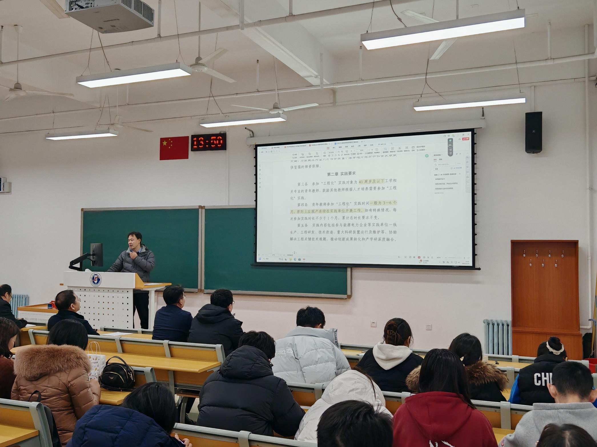 张永生在会上对青年教师“工程化”实践工作进行了部署,他指出,青年教师“工程化”是落实立德树人根本任务,推动产学研融合发展和“卓越工程师”培养的重要举措,针对学院实际,学院制定了相应的工作方案,协调好教学、研究生指导和工程化任务,对接和落实工程化实践基地,落实落细青年教师“工程化”工作,切实提高青年教师专业素质、实践能力和创新能力,推动特色鲜明高水平研究型大学建设不断迈上新台阶,为教育强国和中国式现代化建设作出新贡献!
