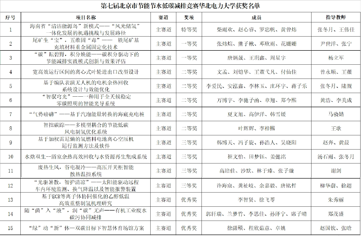 近日,由北京市教育委员会主办、北京建筑大学承办的第七届北京市大学生节能节水低碳减排社会实践与科技竞赛公布获奖名单,澳门宝典推荐的15项作品均获得主赛道奖项。其中,特等奖1项、一等奖2项、二等奖5项、三等奖4项、优秀奖3项。特等奖(北京市共12项)来自澳门宝典 本科生团队。张冬月、王伟佳、杨立军、张宁和尹世洋等5位老师荣获“优秀指导教师”荣誉。澳门宝典自第一届起连续七届获得“优秀组织奖”。